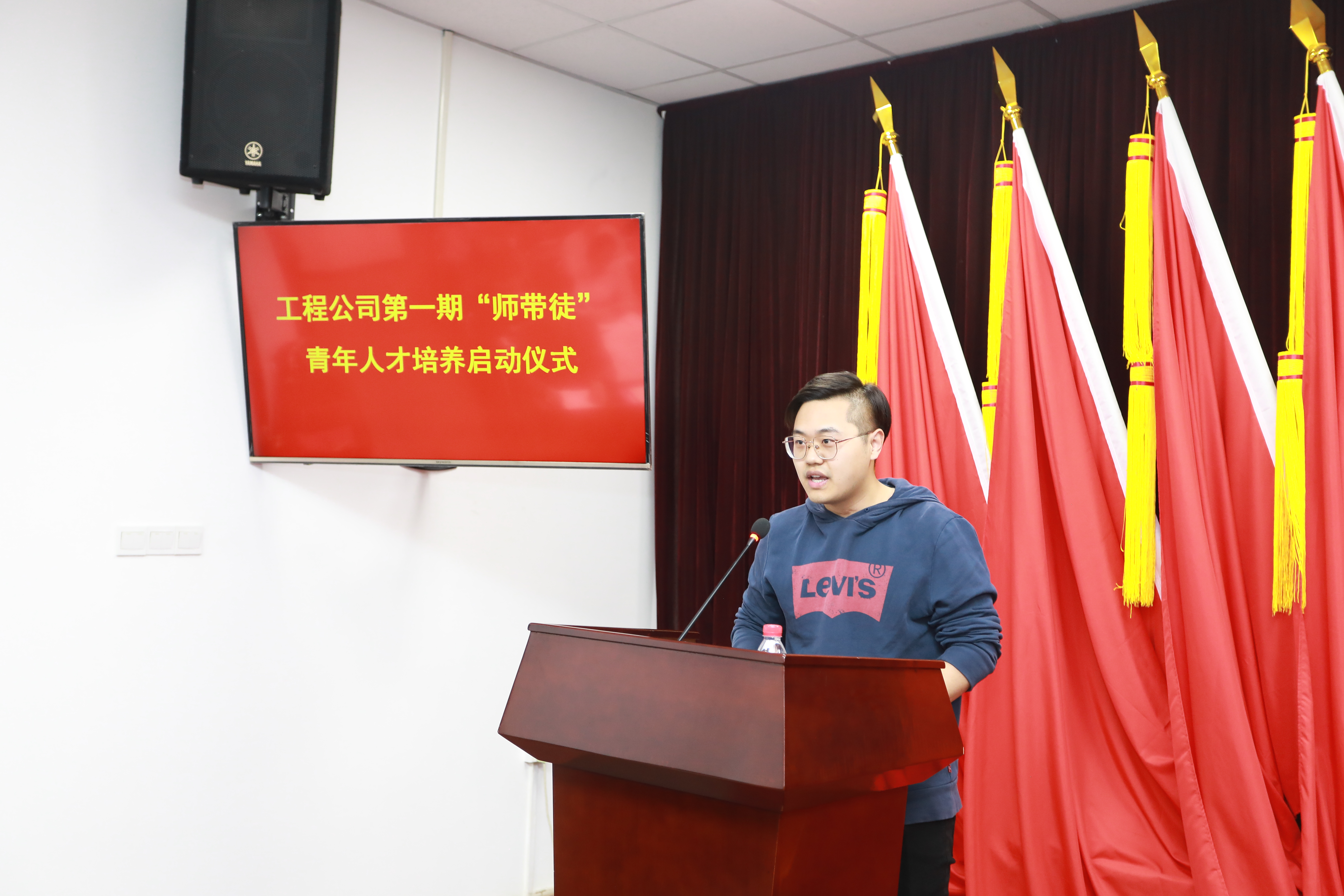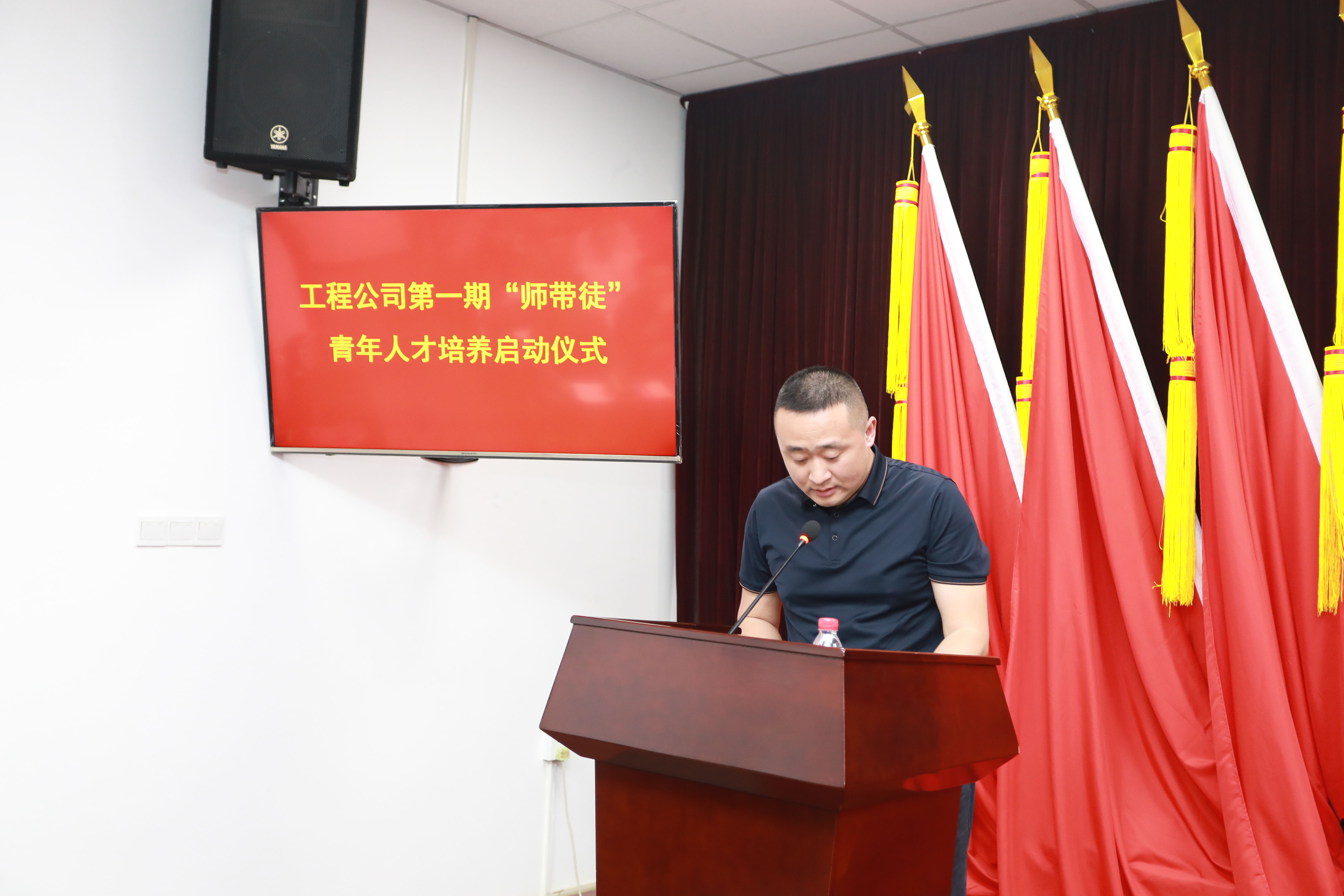 導師代表綜合設(shè)計部馬光輝進行表態(tài)發(fā)言。他表示,在帶徒的過程中,師傅需要教會徒弟基本的知識和技能,培養(yǎng)徒弟的創(chuàng)新能力,實現(xiàn)核心技術(shù)的傳承。