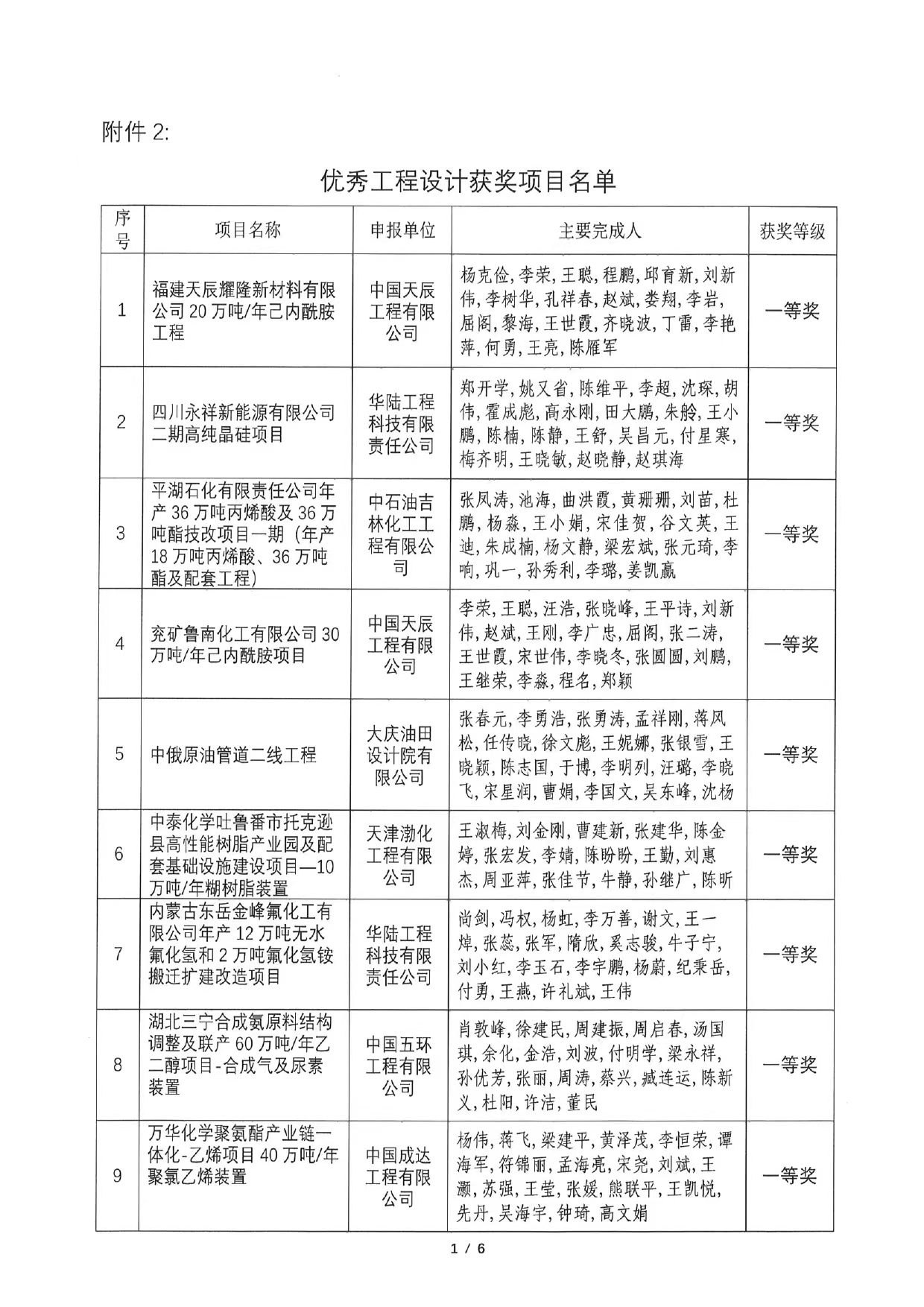 “優(yōu)秀工程設(shè)計(jì)項(xiàng)目”一等獎(jiǎng)
