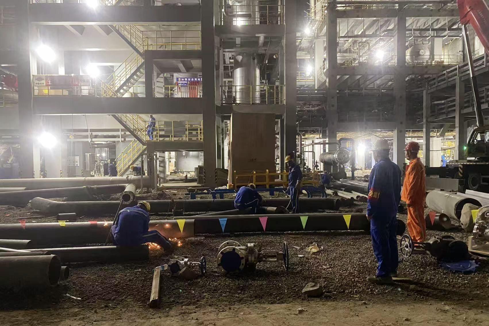 中秋慰問暖工地,齊心協(xié)力保中交——渤化工程辛醇優(yōu)化及安全提升項目開展中秋節(jié)現(xiàn)場慰問活動 2025-10-09 22:33:14 10月6日中秋節(jié),渤化工程安全總監(jiān)萬玉輝代表公司慰問一線,將節(jié)日關懷與暖心物資送到現(xiàn)場的工人手中,讓佳節(jié)溫暖在工地蔓延。 目前,辛醇項目現(xiàn)場的施工人員約560人,正在進行管道安裝收尾、全面管道試壓、電纜的敷設和接線工作,加班加點為10月31日的中交節(jié)點沖刺。 渤化工程向現(xiàn)場工作人員分發(fā)了豬肉、月餅等慰問品,并對大家放棄節(jié)日休假、全力推進項目建設的奉獻精神表示敬意,讓員工在安心工作的同時,感受到“第二故鄉(xiāng)"的溫情。各參建單位表示,會將這份關懷轉化為工作動力,嚴格把控項目質量與進度,以實際行動確保項目如期交付,為目標達成貢獻奮進力量。