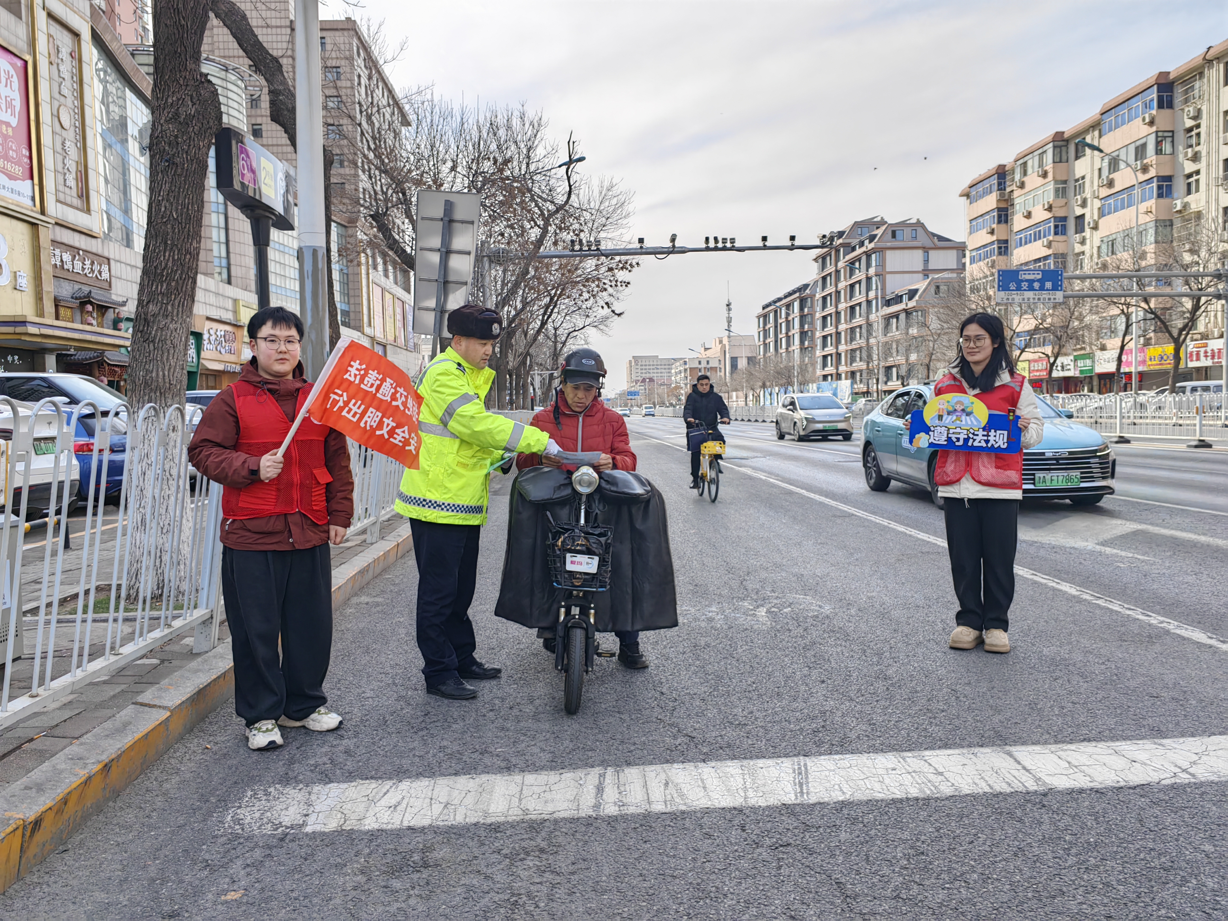 活動(dòng)中,民警與志愿者在交通安全主題公園向過往市民群眾發(fā)放“爭(zhēng)做文明有禮天津人”宣傳頁(yè),講解一盔一帶、規(guī)范停車、禮讓行人、拒絕酒駕等交通安全知識(shí),號(hào)召大家從自身做起,遵守交通法規(guī),爭(zhēng)做文明出行的踐行者。隨后,民警與志愿者清理了路口周邊亂停亂放的共享單車,并在黃河道與臨汾路交口參與交通執(zhí)勤疏導(dǎo),引導(dǎo)車輛和行人有序通行,規(guī)范交通秩序。